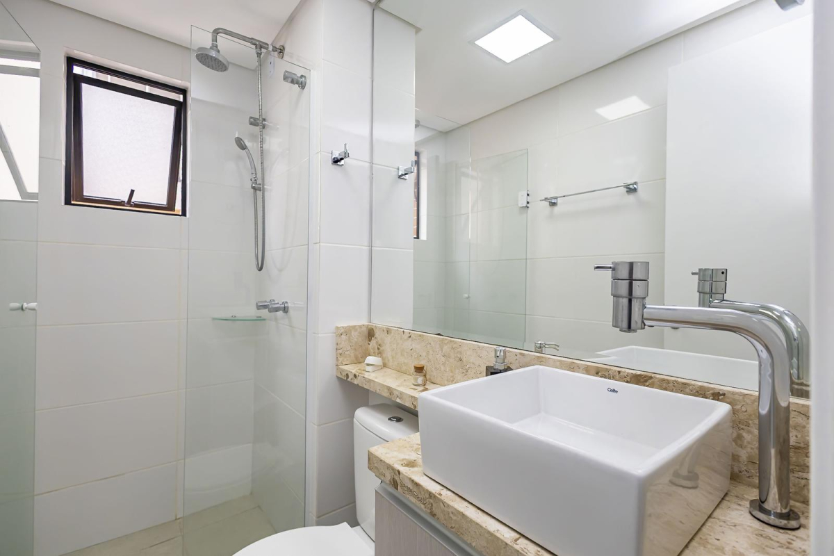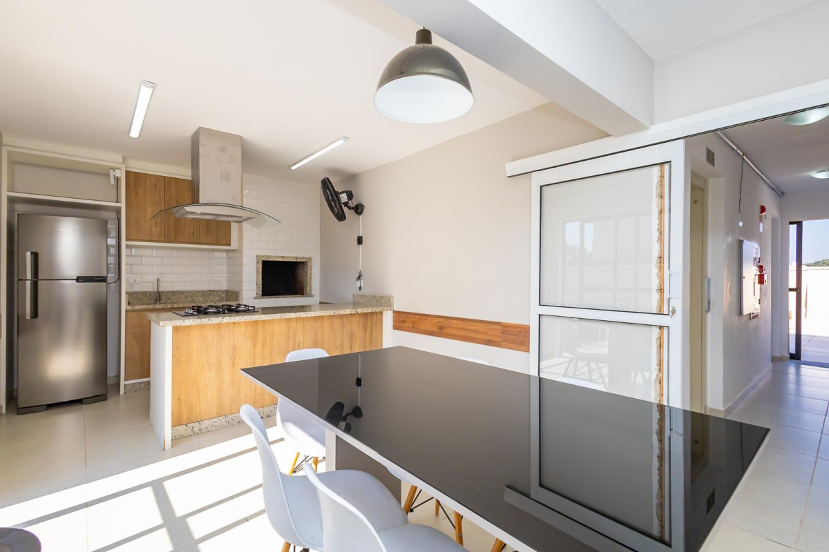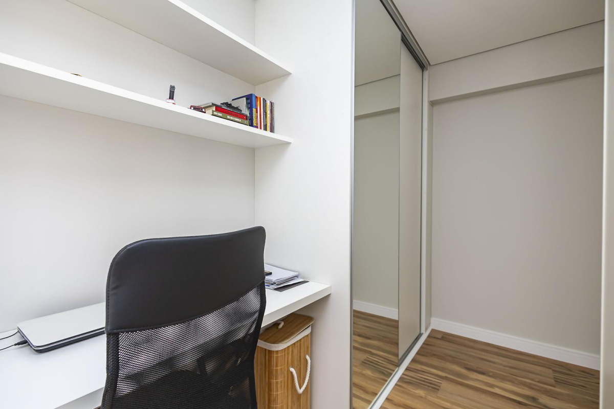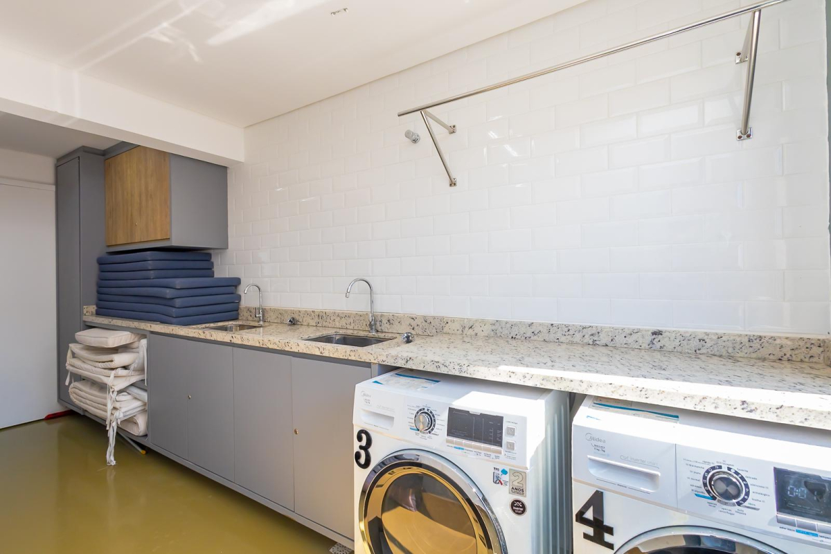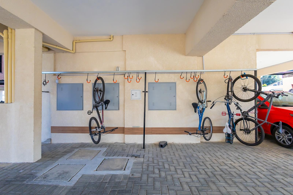 Já o condomínio oferece salão de festa, elevador, sala de ginástica, lavanderia, coworking, mercado e bicicletário.