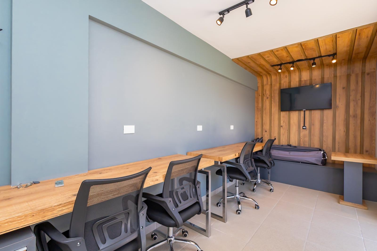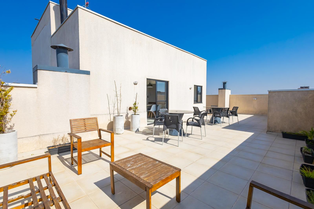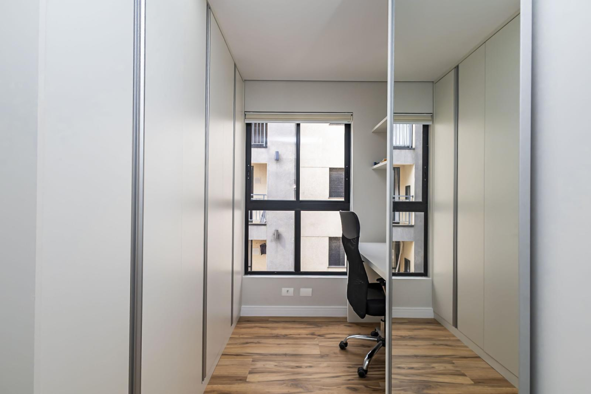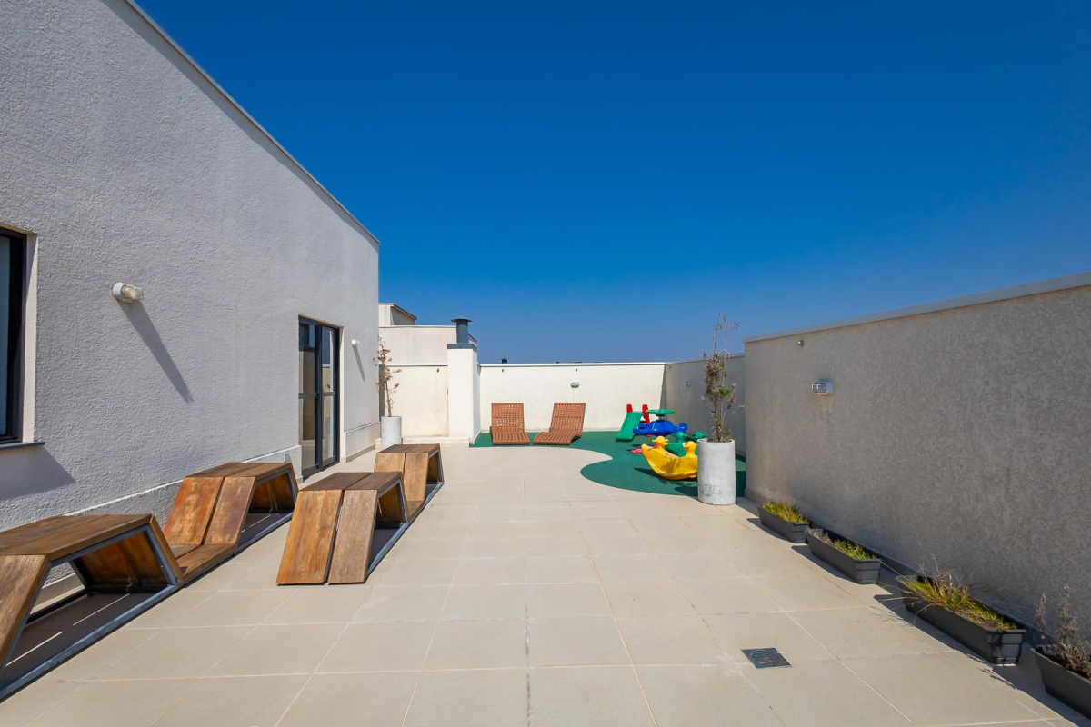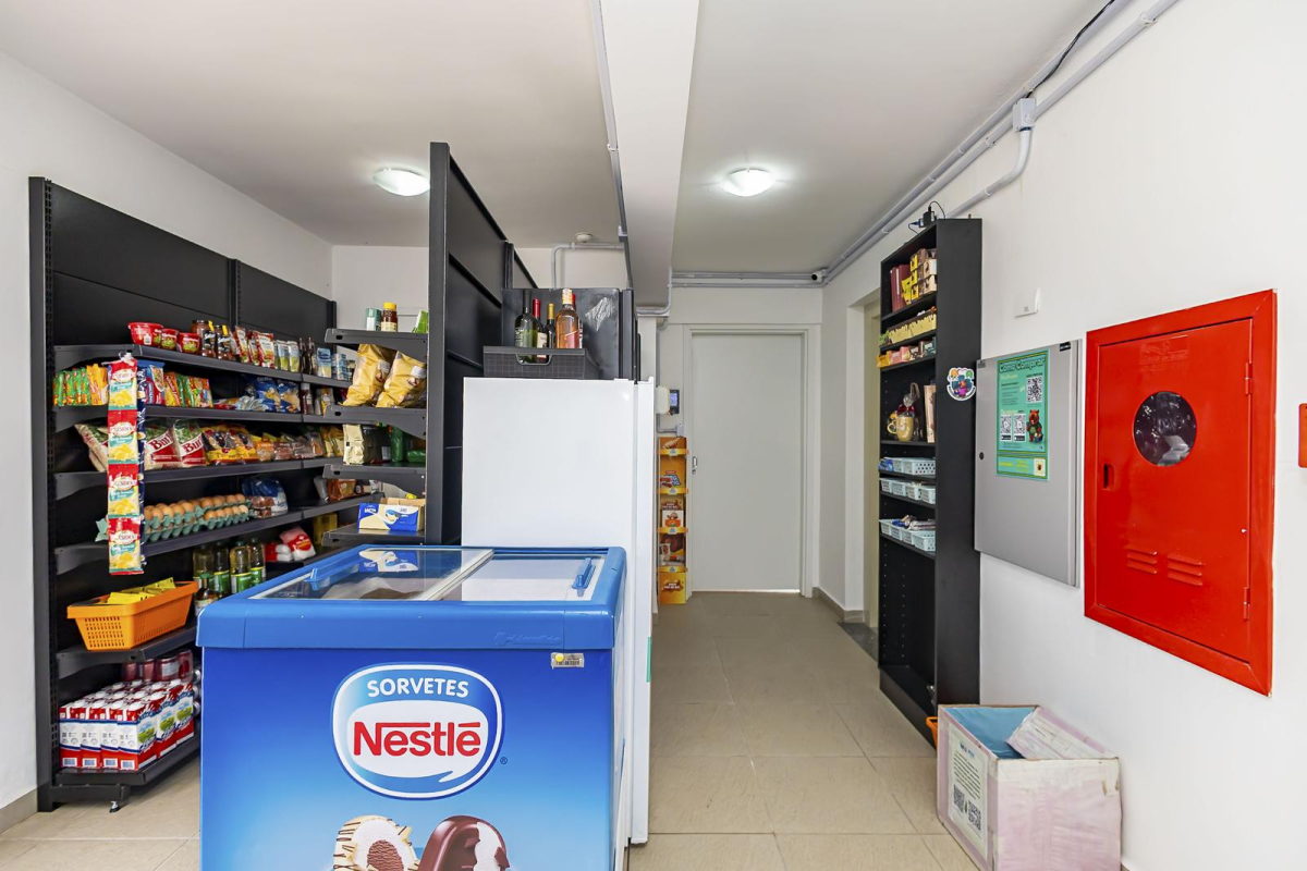 Já o condomínio oferece salão de festa, elevador, sala de ginástica, lavanderia, coworking, mercado e bicicletário.