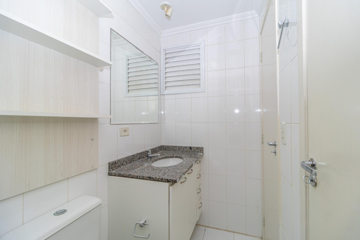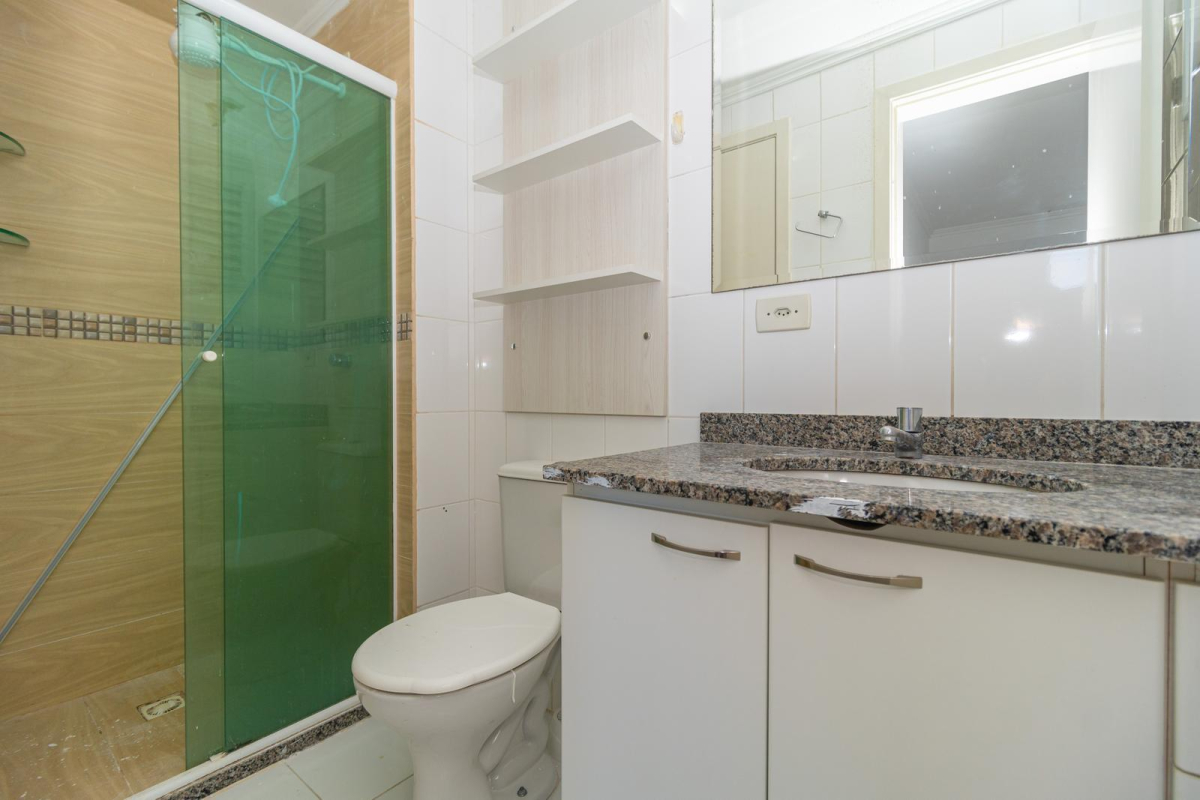 Banheiro com armário e box de vidro, detalhes que fazem diferença no dia a dia.