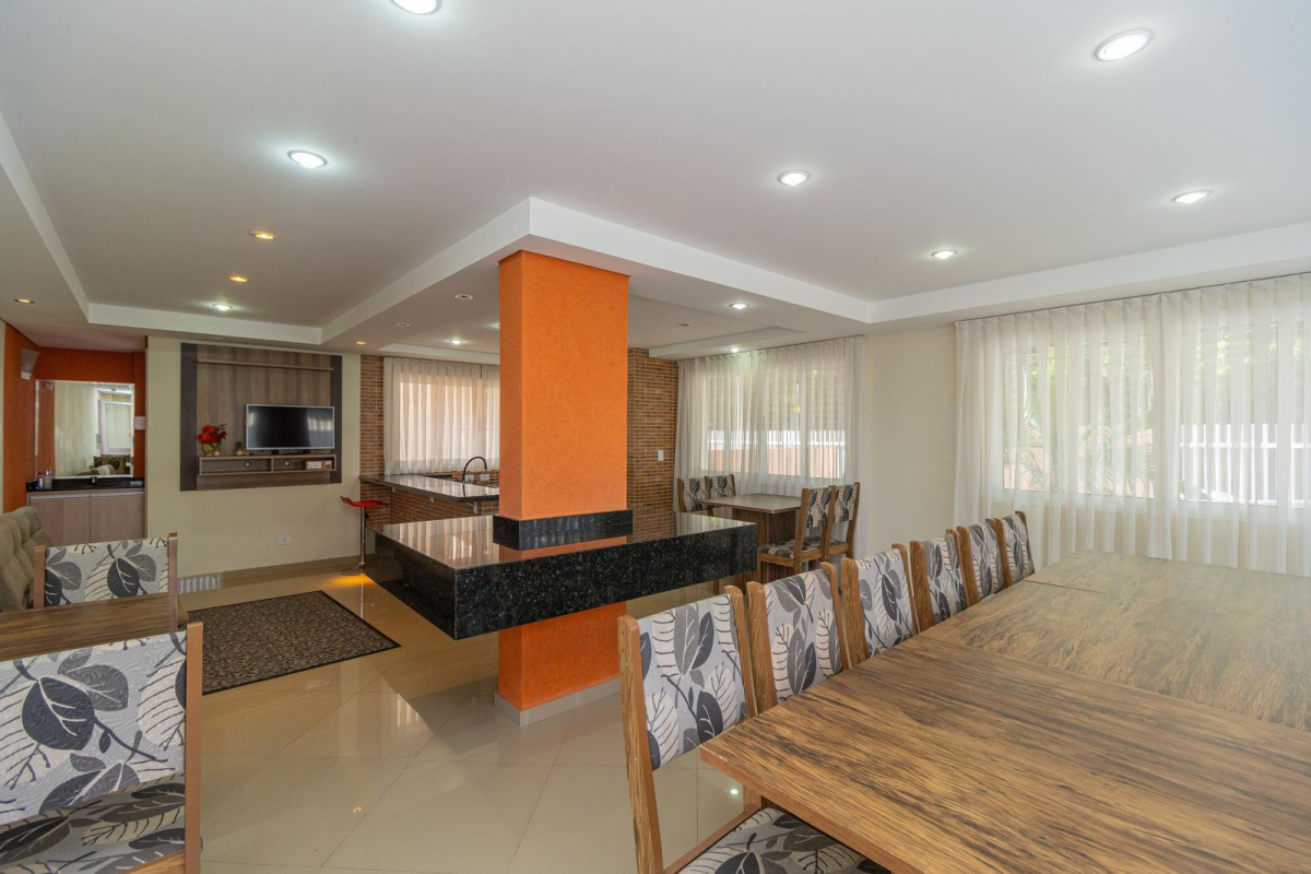 O condomínio oferece salão de festas e churrasqueira coletiva, proporcionando lazer e convivência.