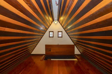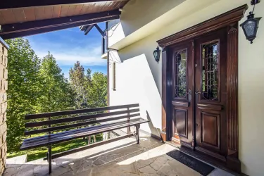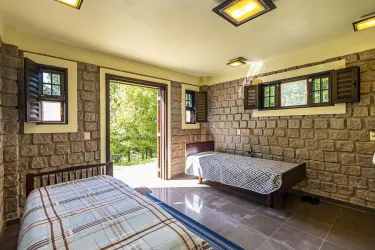 A chácara tem a sua construção e acabamentos projetados por arquiteto e tem muitos detalhes que a tornam única, com paredes em paralelepípedos e aproximadamente 60mil cacos de pedras colocados manualmente, seu piso em basalto polido, móveis em madeira maciça de imbuia e mogno, janelas em alumínio adonizado e vidros de 8mm.
