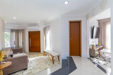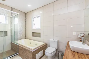 Desfrute de momentos de relaxamento na sua própria suíte master, que conta com um closet e uma banheira para momentos de bem-estar. O imóvel ainda possui uma área externa com piscina, churrasqueira privativa e um quintal gramado com pomar, perfeito para receber amigos e familiares em confraternizações ao ar livre. As janelas grandes garantem iluminação natural e uma vista agradável, enquanto as comodidades do condomínio, como portaria 24h, circuito de segurança e áreas verdes, trazem a tranquilidade que você e sua família merecem.