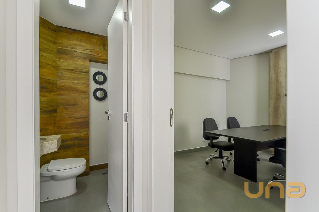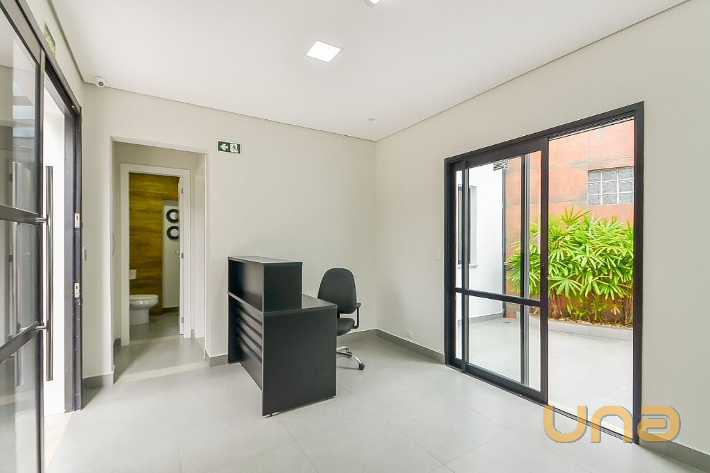 - Sala de entrada com recepção e sala de espera com mesas de atendimento