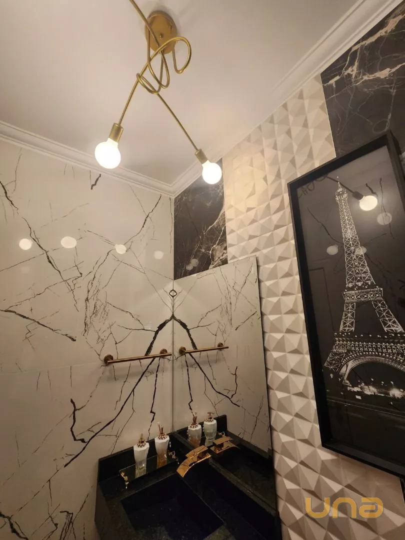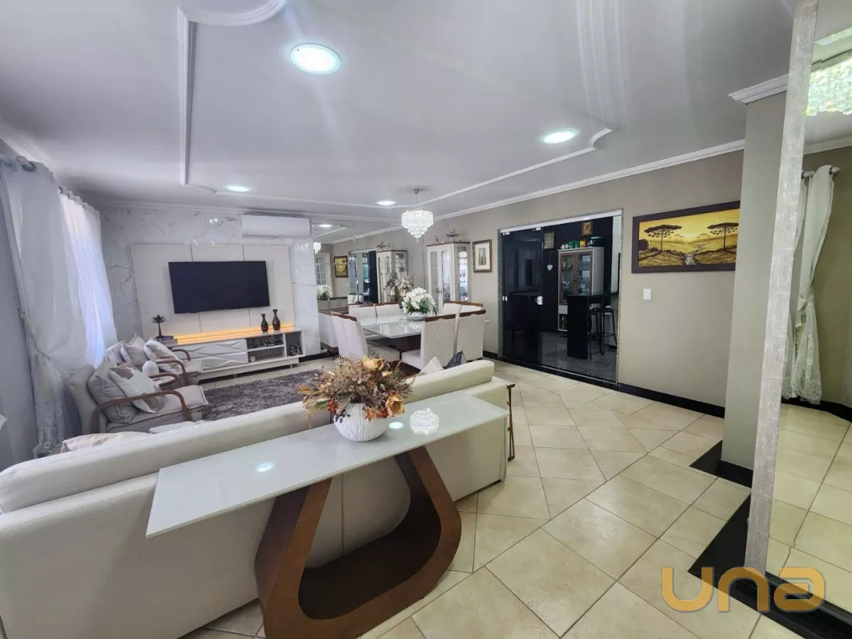 - Sala ampla para dois ambientes, estar e jantar integrados, com teto em gesso e belos lustres