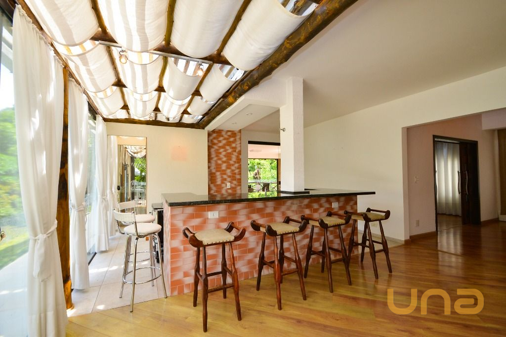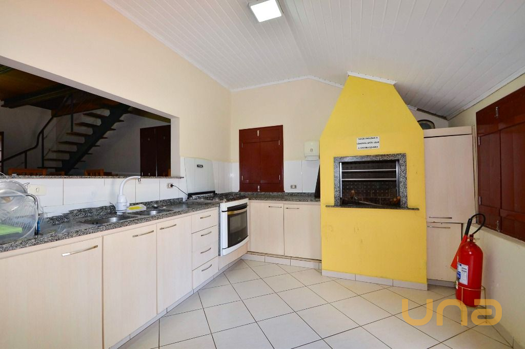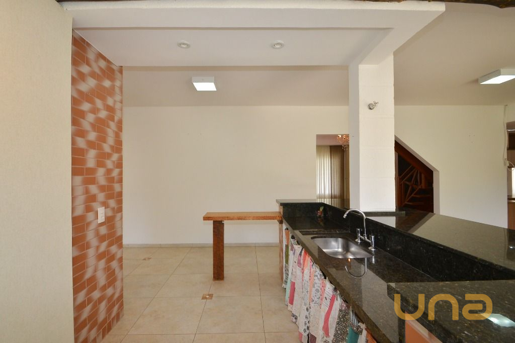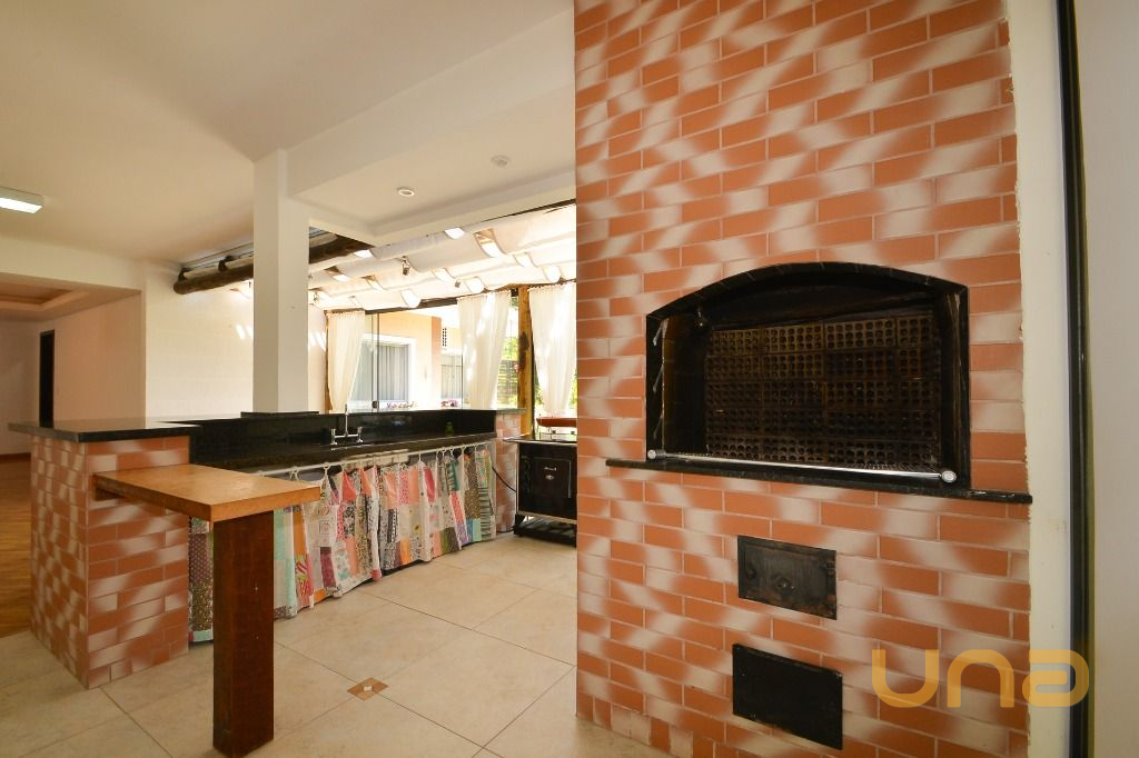 - Área gourmet completa, com bancada, cadeiras, churrasqueira e fogão a lenha