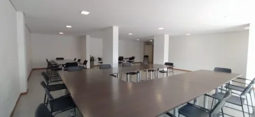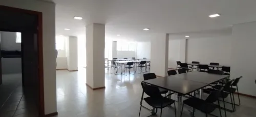 - 01 sala ampla com piso em cerâmica, espaço próprio para instalação de armário embutido, grandes janelas que oferecem ótima iluminação natural e proporcionam um ambiente arejado.