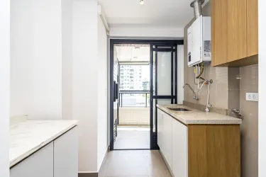 Área de serviço com armário sob medida, tanque embutido e central de gás;