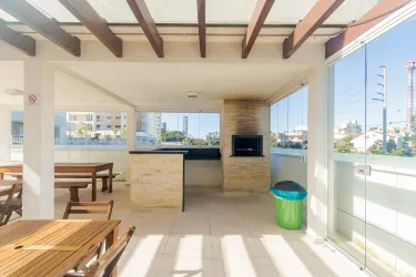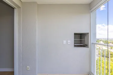 01 sala com a sacada com churrasqueira, vista prestigiando o bairro;