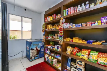 Condomínio oferece: portaria 24 horas, mercado e salão de festas.