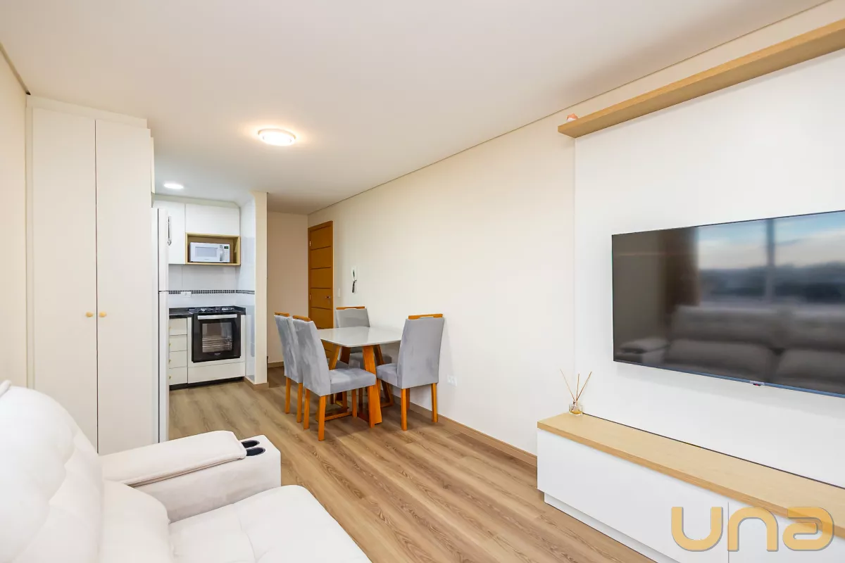 No apartamento ficarão apenas os móveis embutidos em todos os cômodos e persianas em todas as janelas, Excelente oportunidade para morar ou investir, esse ensolarado apartamento no Rebouças com apenas 01 ano de uso, conta com 01 quarto separado, o banheiro e a cozinha tem janela externa com ventilação natural e vista livre de ambos os lados.