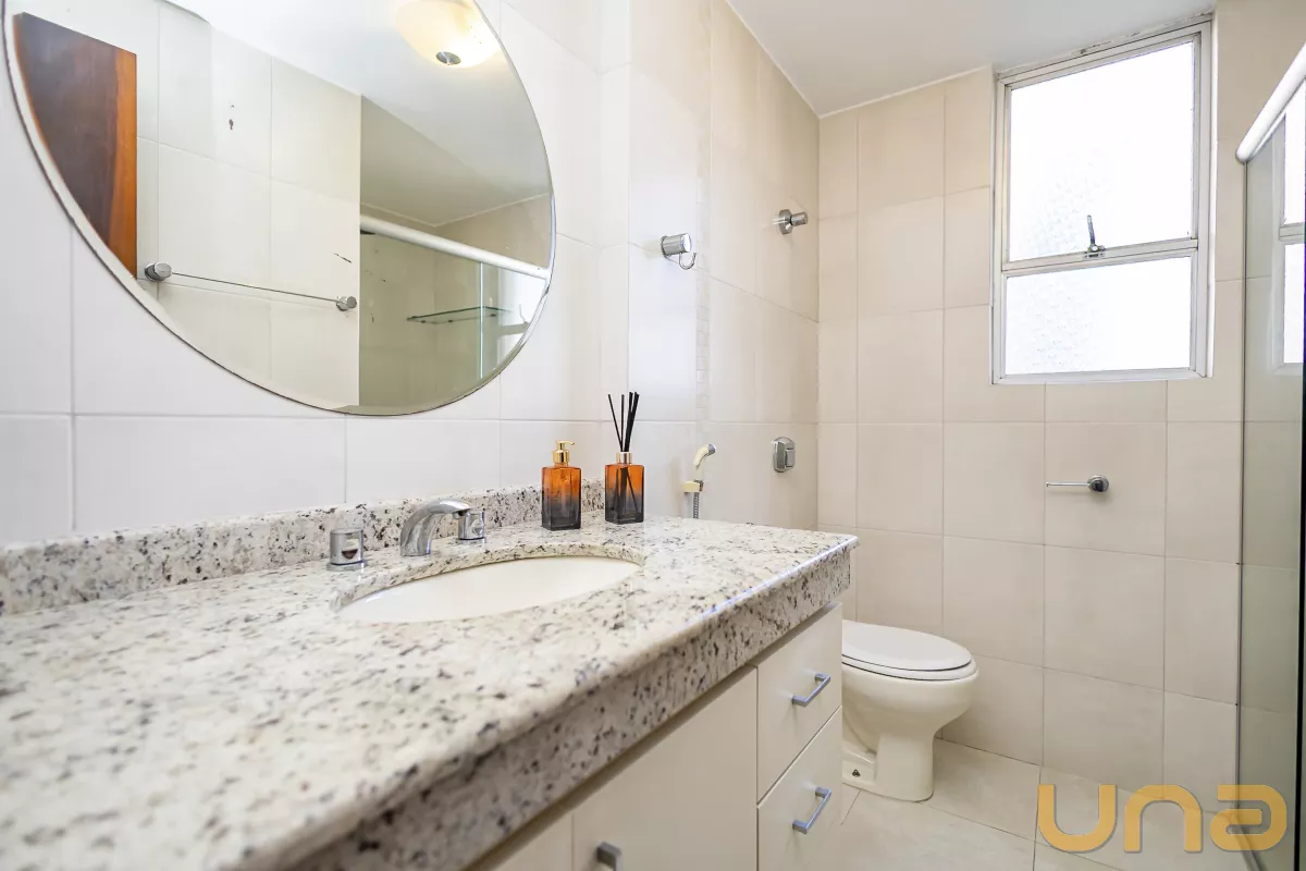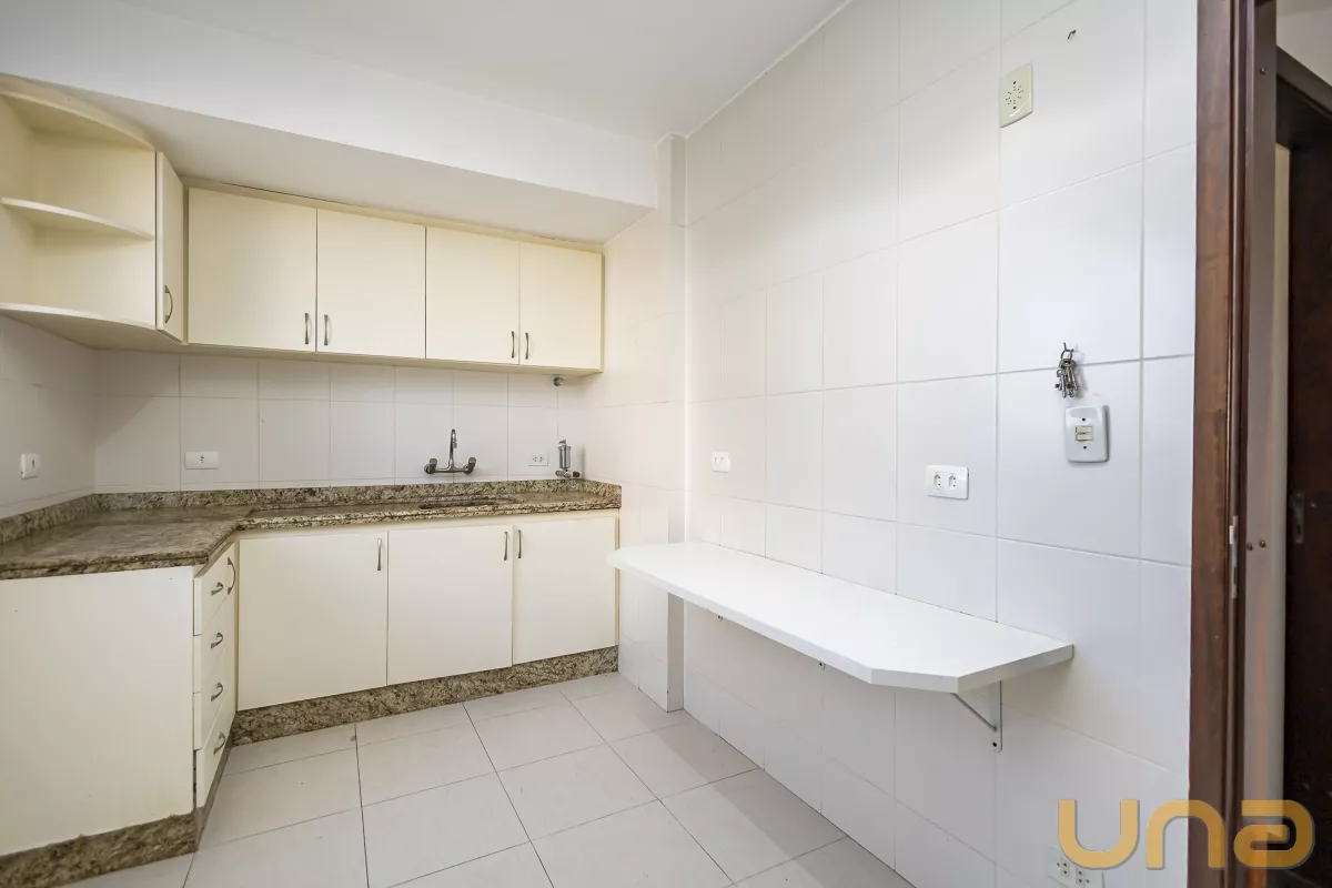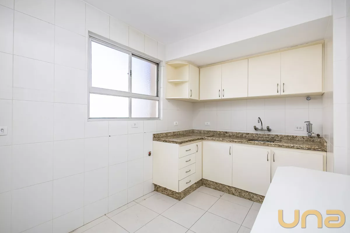 Apartamento no sétimo andar, espaçoso, no bairro mais cobiçado de Curitiba. Tem duas entradas, uma social e uma pela área de serviço. Com 3 quartos, sendo uma suíte, todos abertos e bem iluminados. Apartamento com face norte, pega uma boa luminosidade e sol durante o dia.