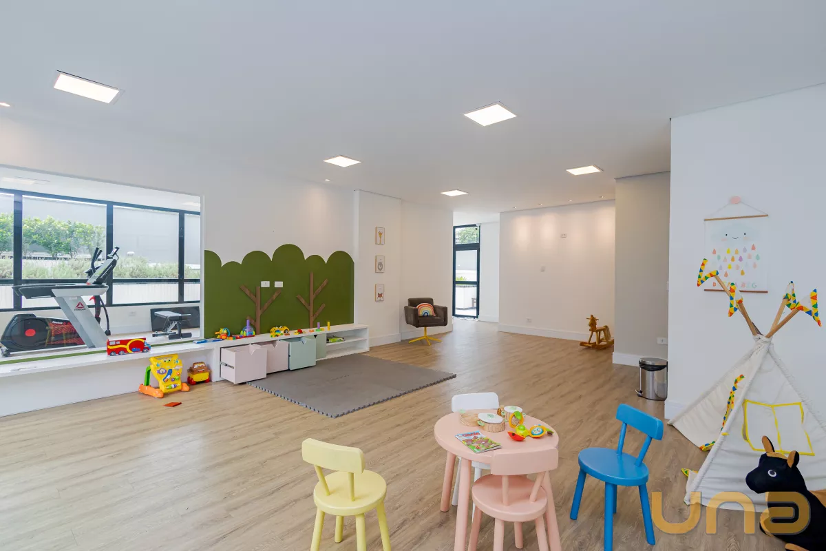 O condomínio oferece opções de lazer como brinquedoteca, fitness, playground e salão de festas.