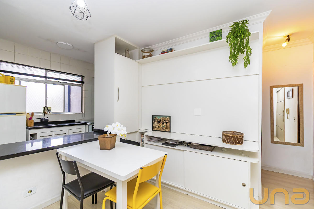 Apartamento aconchegante, 1 quadra do shopping curitiba, com uma excelente planta, cozinha gourmet, estilo americana, área de serviço separada da cozinha, ampla sala para 2 ambientes, banheiro social. Imperdível!