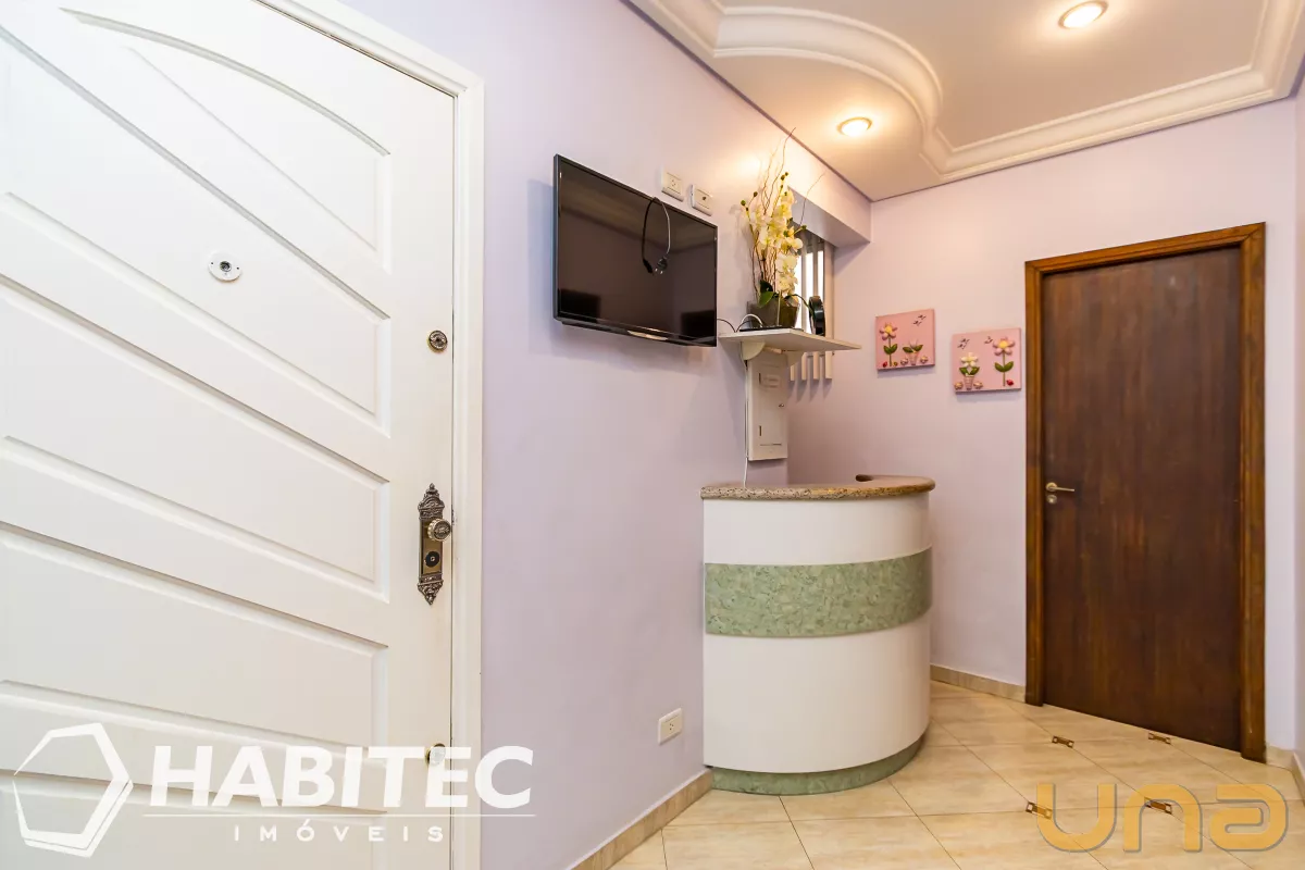 Com 57,29 m² de área privativa, o imóvel oferece 02 salas amplas com armários e equipadas com um banheiro privativo. Além disso, há uma ampla sala de espera, mobiliada com sofás fixos, um espaço de copa com armários e 01 banheiro social, dispõe ainda de 01 vaga de garagem rotativa.
