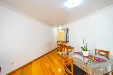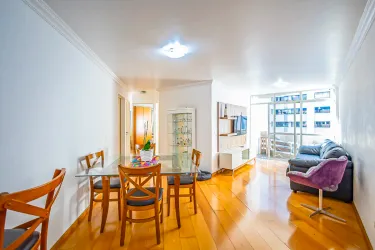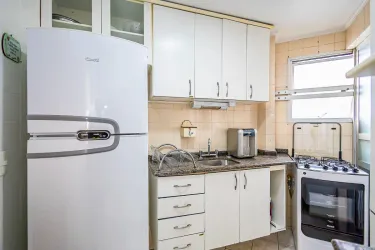 O apartamento possui 3 quartos com armários, sendo um suíte, banheiro social, sala para 2 ambientes com cozinha integrada e armários, área de serviço, dispensa e uma sacada.