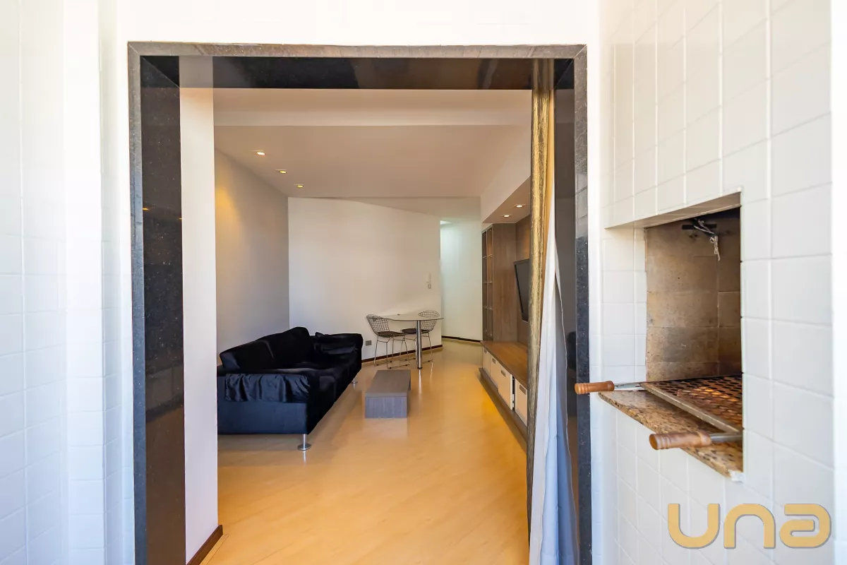 Sala ampla para dois ambientes com painel para TV, Sacada fechada com churrasqueira,
