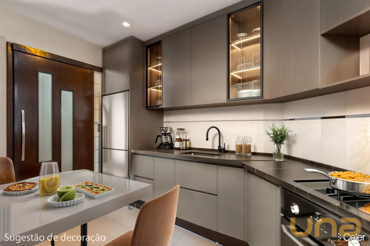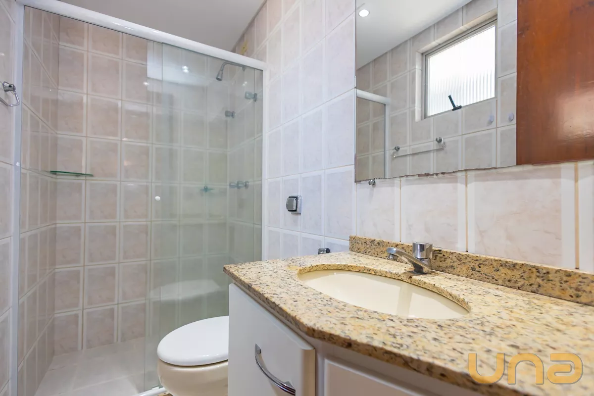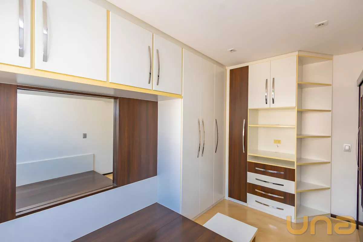02 quartos sendo 01 com armário, Banheiro social com armário e água quente com sistema de caldeira, cozinha e área de serviço com armários.