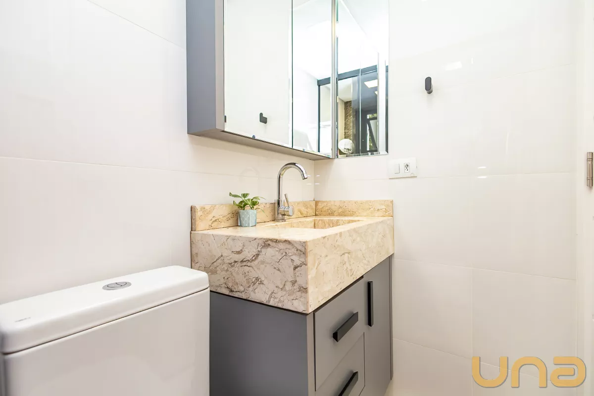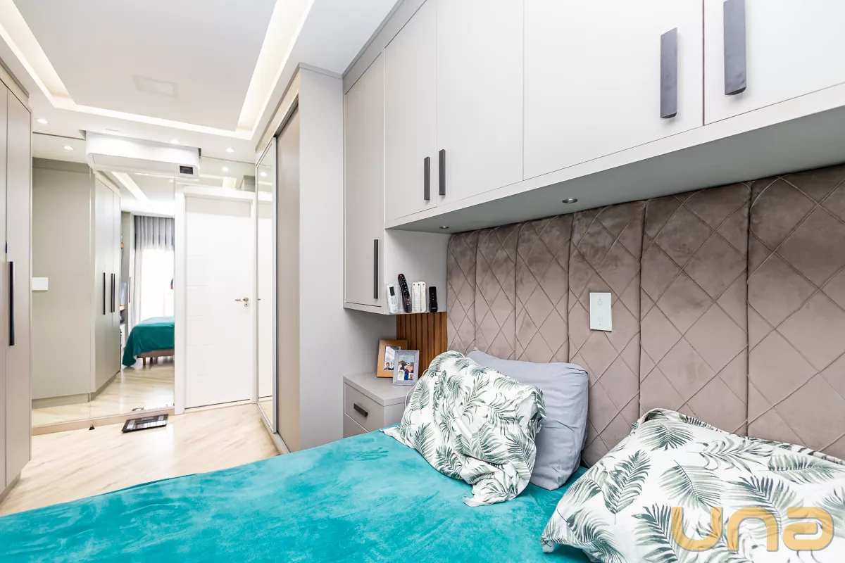São 3 quartos, sendo uma suíte. Todos com ar condicionado, venezianas eletrônicas e armários planejados. Possui 2 banheiros sociais (1º andar e ático), o banheiro da suíte e o lavabo no térreo, totalizando 4 banheiros. Famílias grandes e visitas não serão um problema!