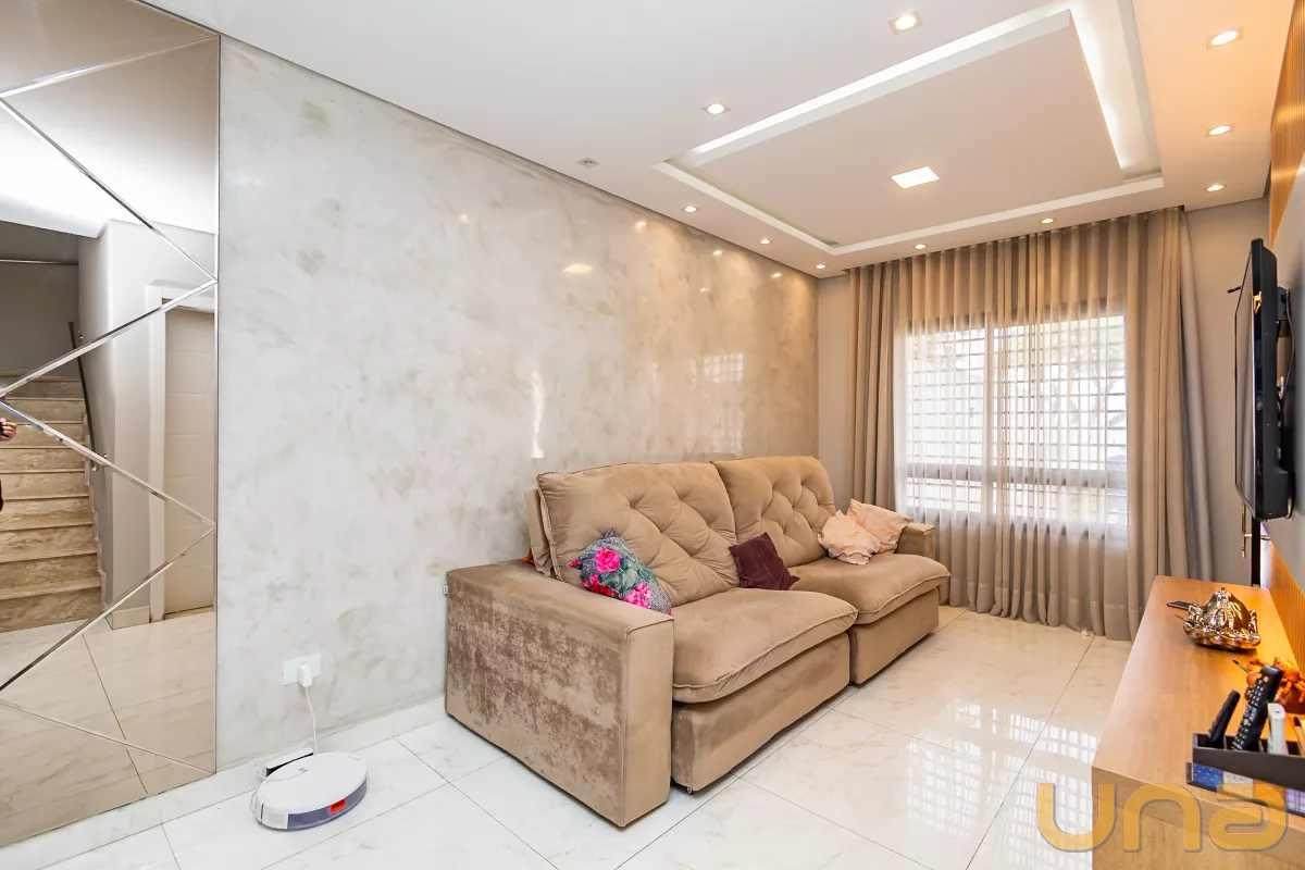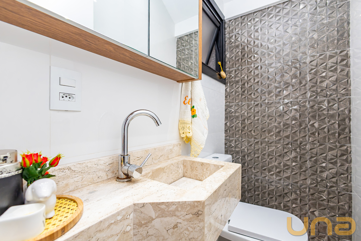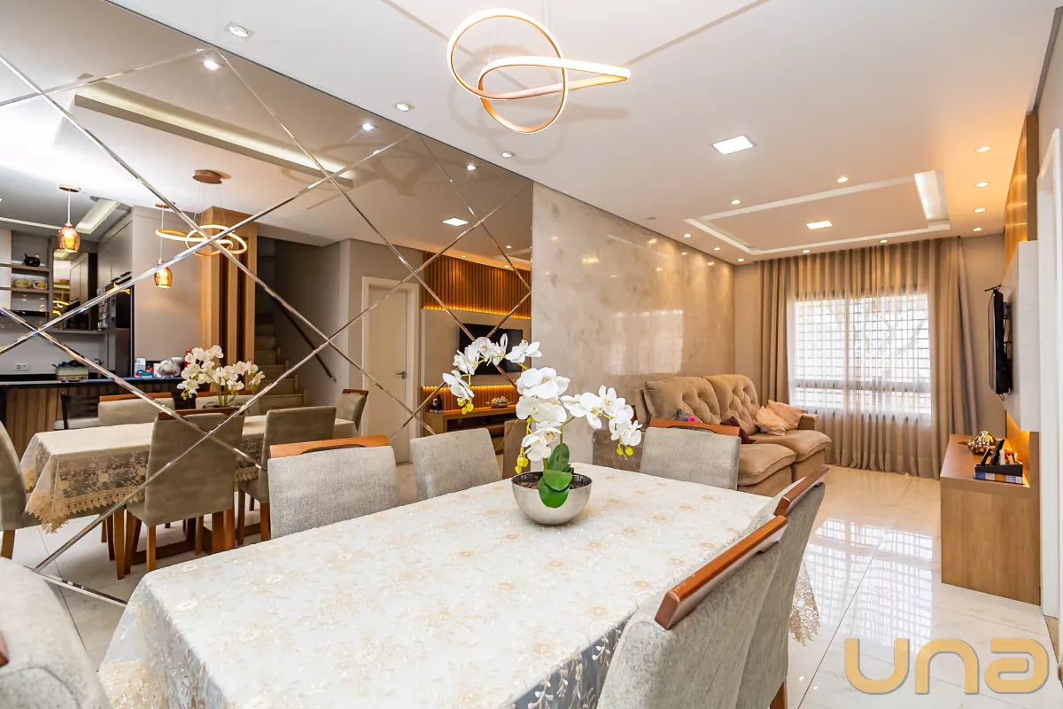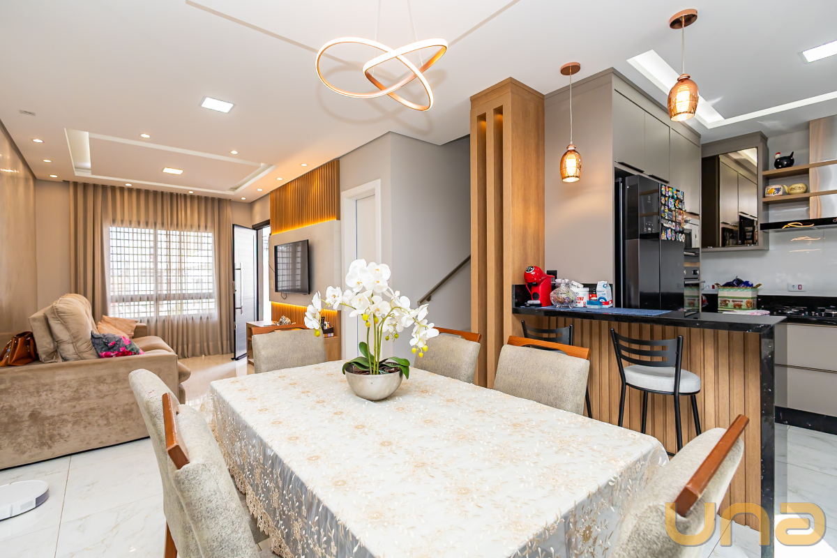 Sala de estar e jantar integradas, com ar-condicionado. Ainda no primeiro pavimento, um lavabo e cozinha modernizada com armários planejados e iluminação projetada. Aos fundos, uma churrasqueira com teto retrátil e área de serviço.