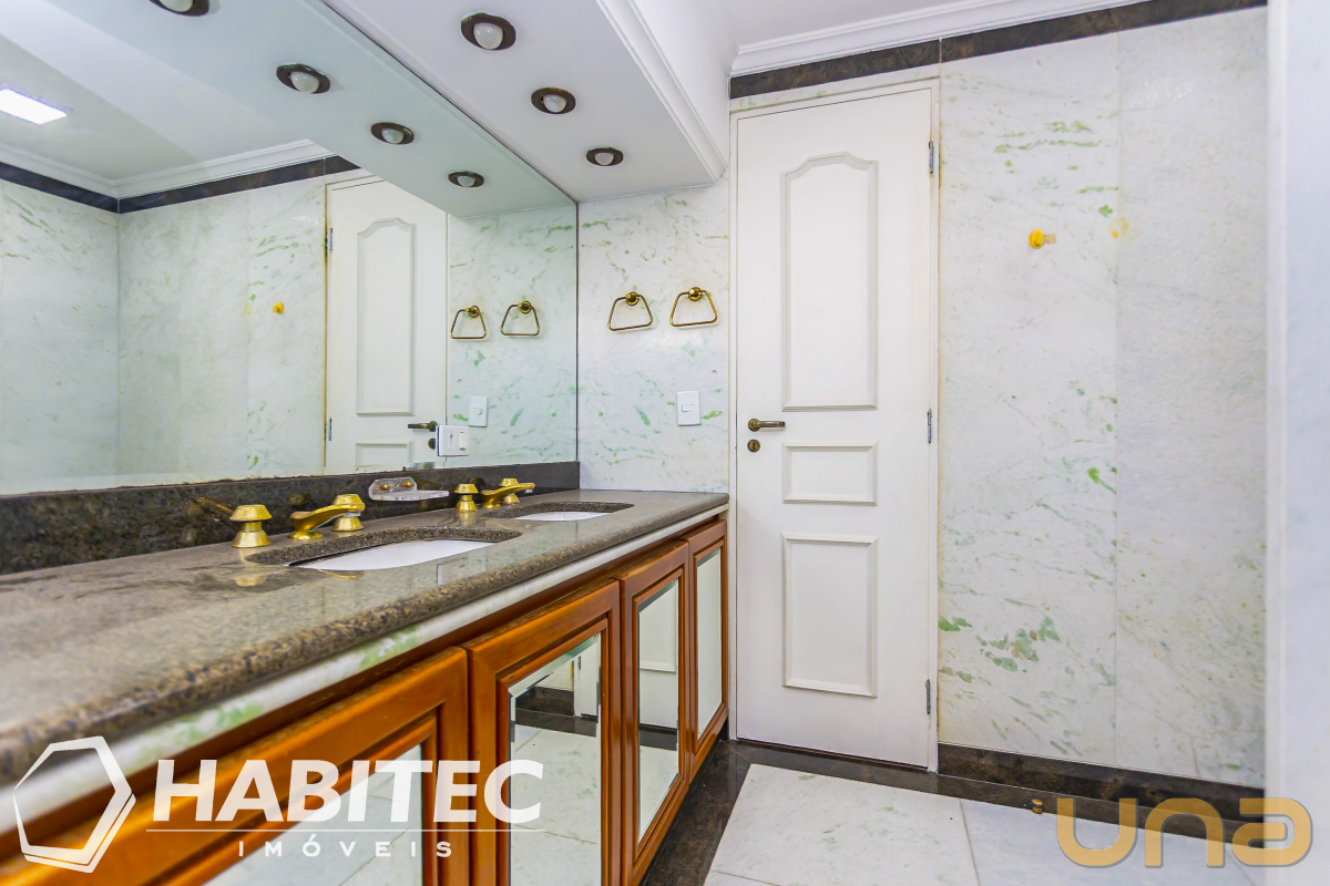 O apartamento possui 4 quartos (suíte), banheiro social, lavabo, ampla sala de estar e jantar, cozinha, despensa, área de serviço e dependência completa de empregada.