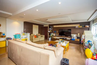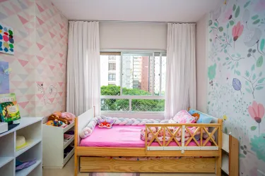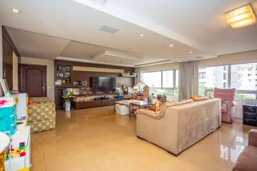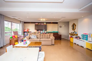 O apartamento conta com 4 quartos sendo 2 suítes com closet, banheiro social, lavabo, sala ampla com janelões de vidros para dois ambientes, sala de jantar, cozinha e dependência completa de empregada.