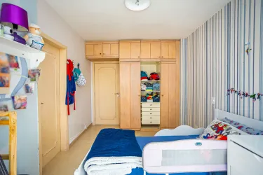 Armários planejados na cozinha, dormitórios e banheiros.
