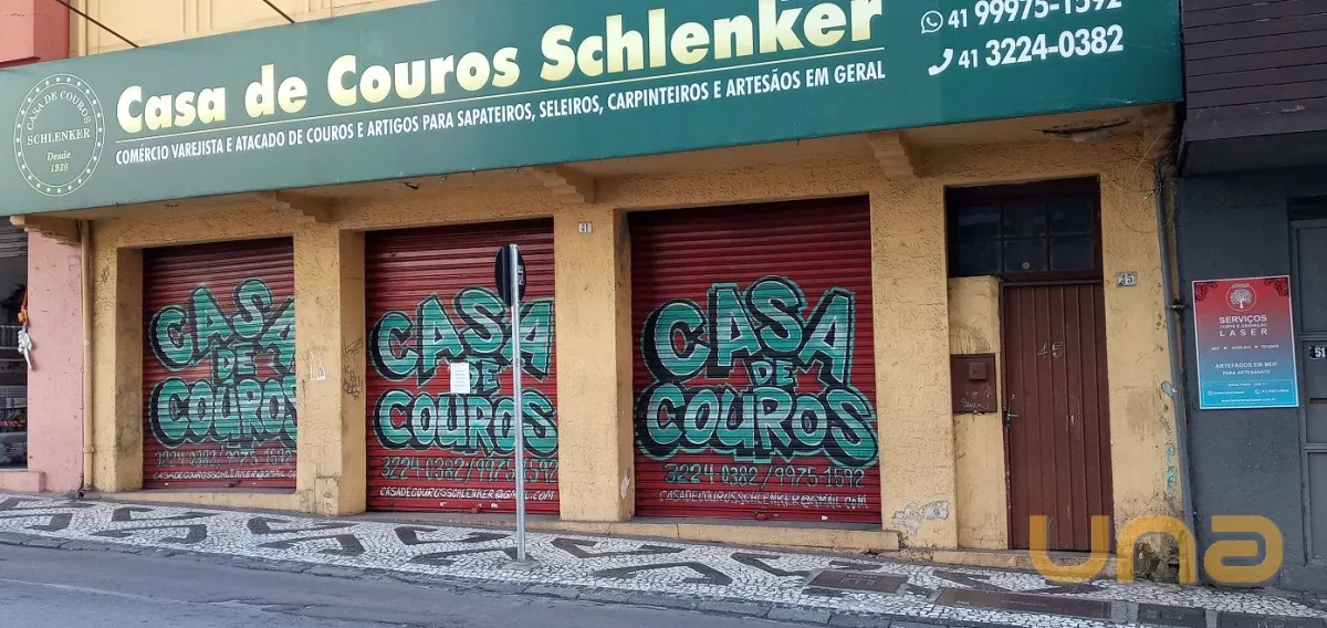 Loja localizada nas proximidades da Praça Santos Andrade e UFPR, com 76 m², mezanino em madeira, piso em cimento bruto e forro em PVC.