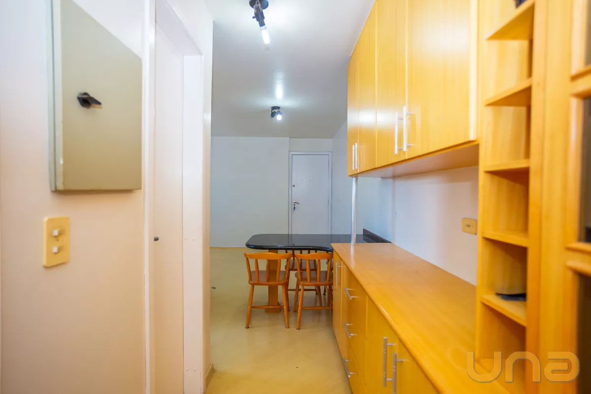 Excelente apartamento com uma sala acolhedora, mesa de granito fixa, perfeita para momentos de refeição e convívio. Ao longo do corredor, armários oferecem espaço organizado e funcional. Os 2 dormitórios são dotados de armários sob medida, sendo a suíte com banheira sem hidromassagem. A cozinha, iluminada naturalmente, está equipada com armários planejados que otimizam o espaço, e uma área de serviço integrada que facilita as tarefas do dia a dia.