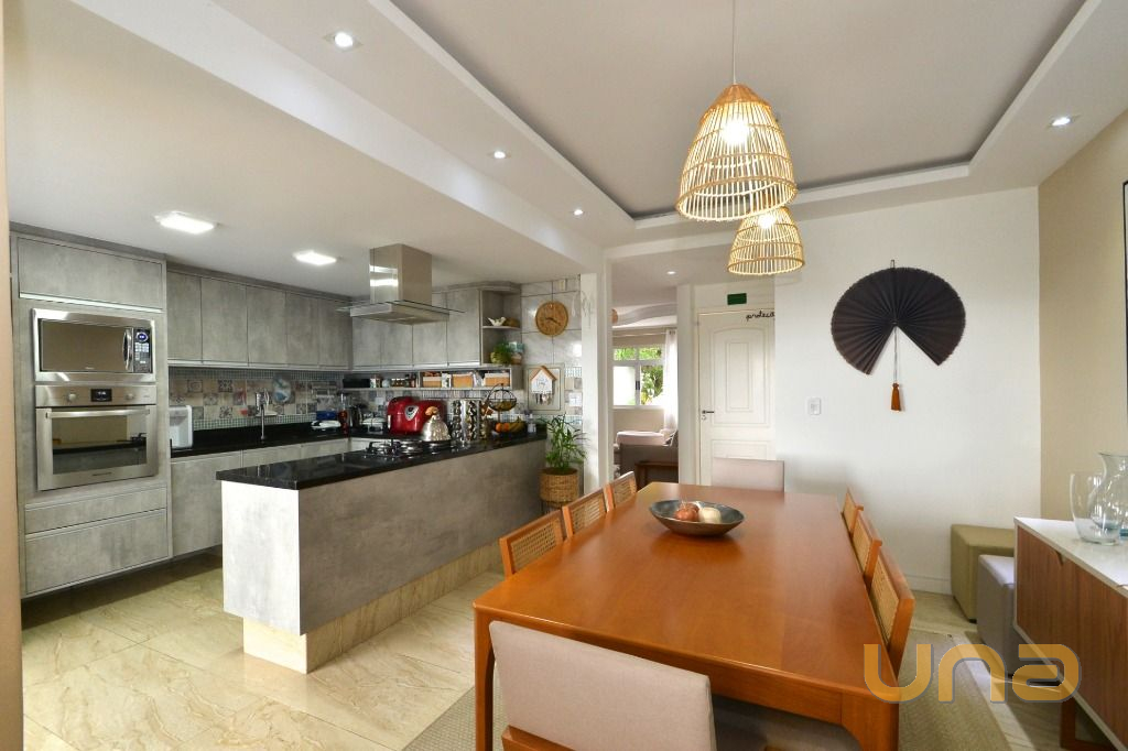 Ao descer para a sala, você encontra um ambiente integrado, com espaço de sobra para relaxar e também para reunir a família nas noites de jantar. A cozinha, totalmente mobiliada e planejada, convida a preparar refeições especiais, com tudo no lugar certo e muito estilo.