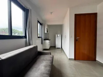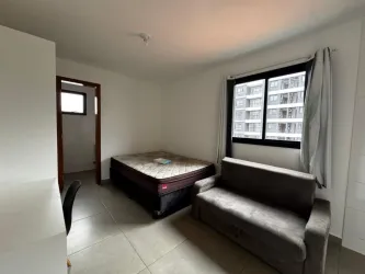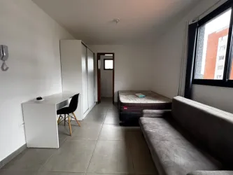 - Sala, Quarto e Cozinha conjugados com Sofá Cama, Mesa de Escritório com Cadeira.