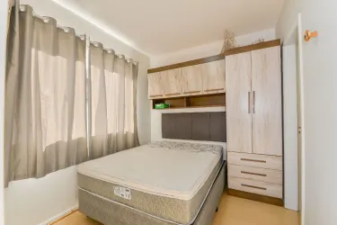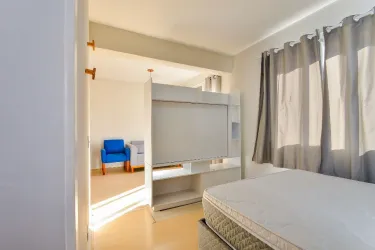 - Quarto com excelente iluminação natural, equipado com cama e armários.