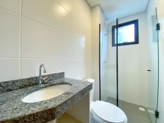 - Banheiro com box em vidro temperado e armário