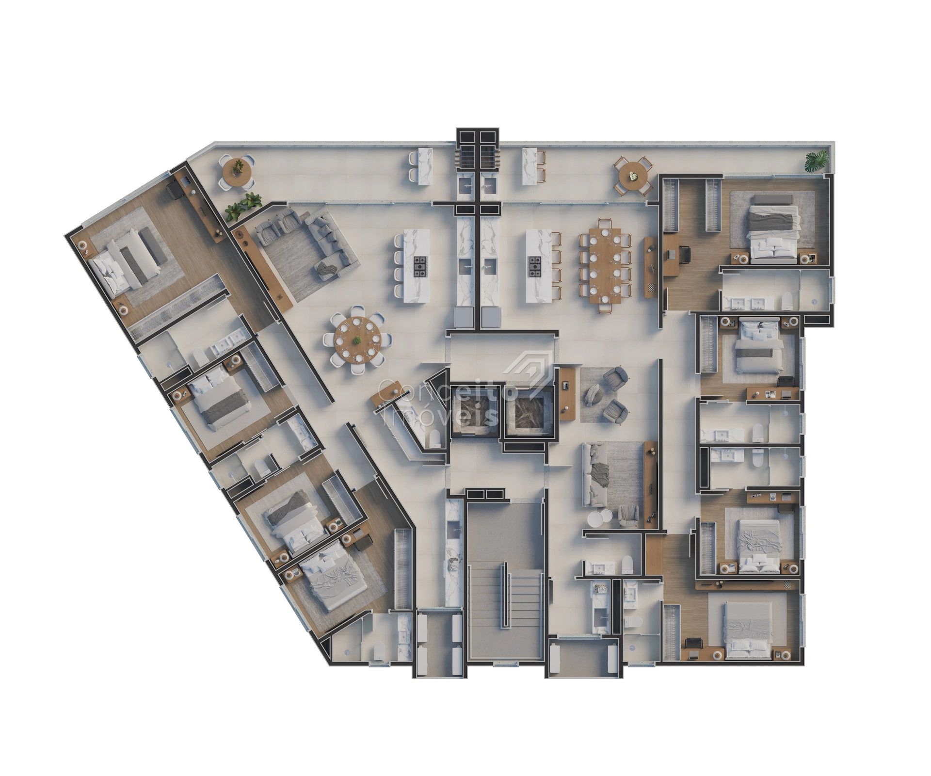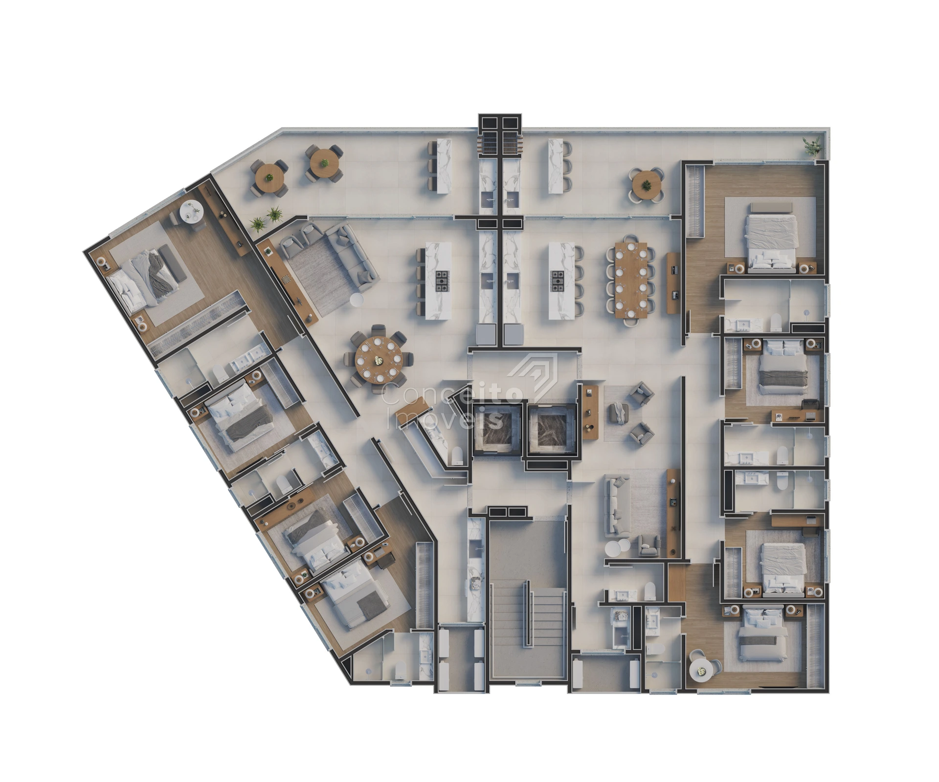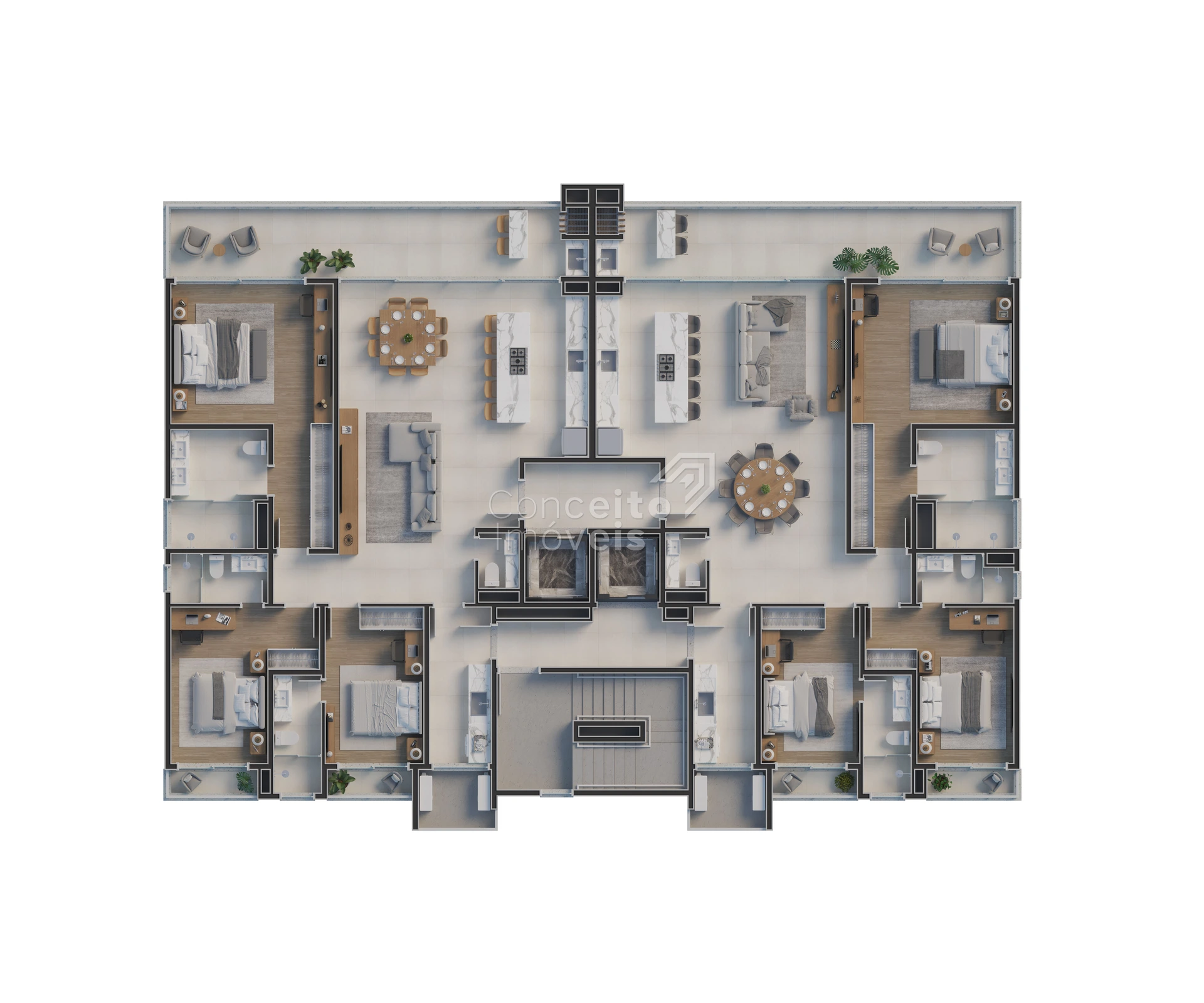 A amplitude se revela em cada ambiente, na circulação fluida, na forma como tudo se conecta com naturalidade.