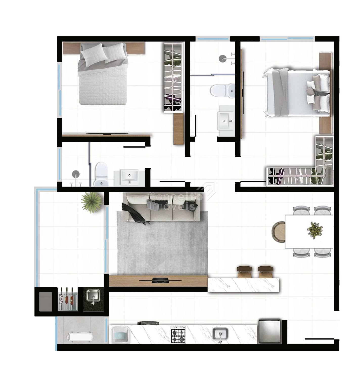 ✔️ Unidades com áreas que variam de 48 m² a 88 m², com opções de 1 e 2 dormitórios, incluindo suítes e studios.