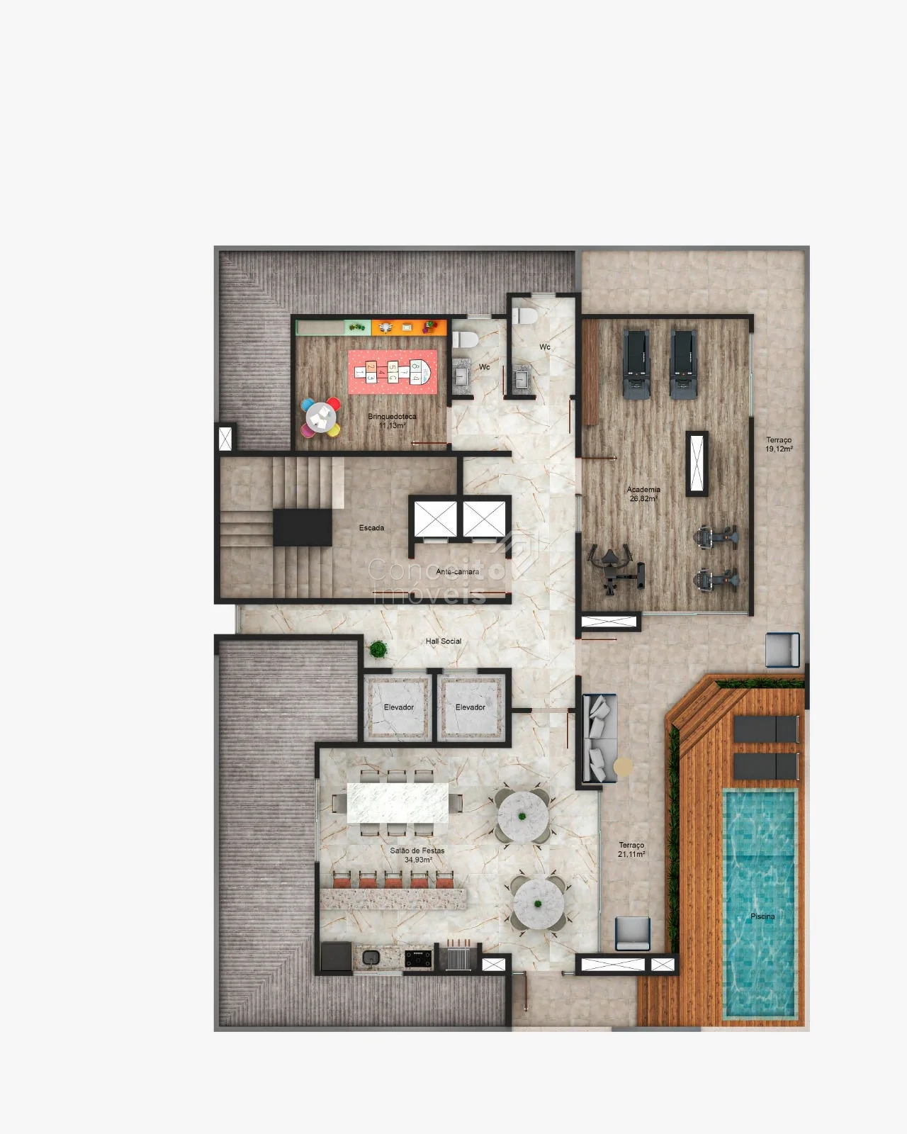 🏊♂️ Piscina com Espaço de Solarium — área para relaxar e aproveitar os dias de sol.