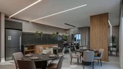 Cozinha de conceito contemporâneo, com bancadas sofisticadas, integração visual com o living e excelente aproveitamento de espaço