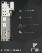 Acabamentos internos: pisos em porcelanato, detalhes em gesso no teto e rodapés, portas laqueadas, preparação para ar-condicionado tipo split.