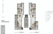Configuração: apartamentos com 2 suítes, opção de suíte + dormitório, sala integrada, cozinha e área de serviço separada.